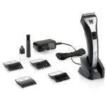 ACCESSORIES: 4 Magnetic Premium Attachment Combs (1,5/3/4,5/6 mm), charging stand, energy-efficient plug-in-transformer, cleaning brush, oil.