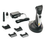 INCLUSIVE: 4 slide-on attachment combs 3, 6, 9, 12 mm, charging stand, energy-effi cient plug-in transformer, cleaning brush, oil.